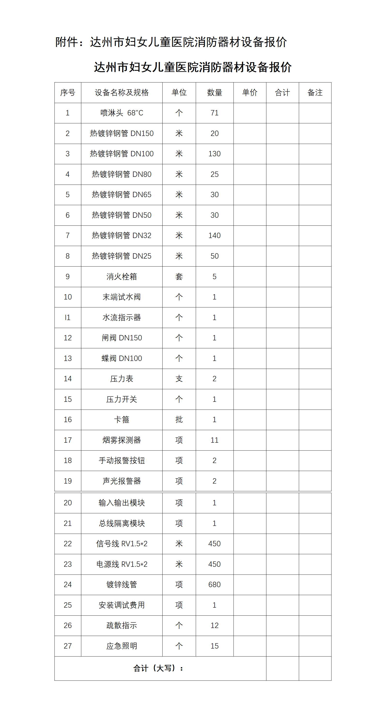 (二)须按照表格提供《达州市妇女儿童医院消防器材设备报价》。