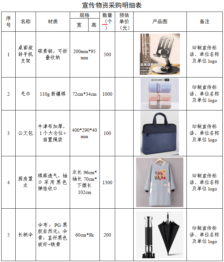附件:宣传物资采购明细表