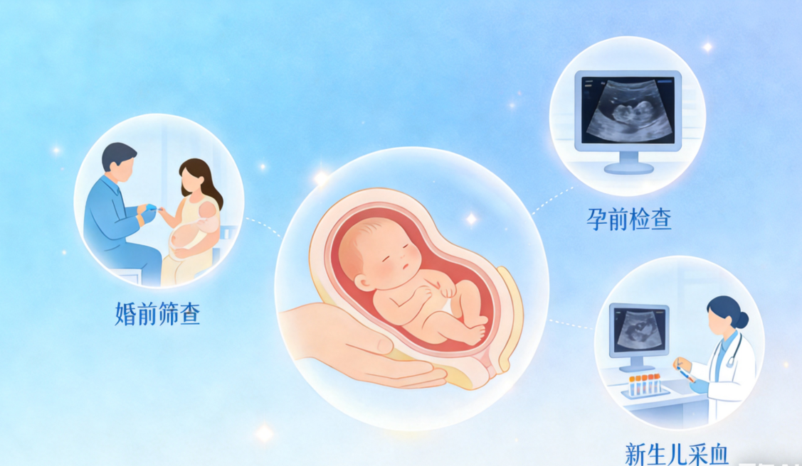 1.婚前/孕前筛查:开展遗传咨询、基因检测,规避隐性遗传病传递风险;